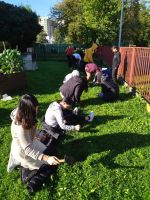 24. října vysadili žáci 9. ročníku cibulky krokusů. V ideálních podmínkách by měly tyto křehké rostlinky vykvést na konci ledna nebo na začátku února.