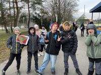 Po úspěšném vyřešení tajenky a objasnění úkolů byli žáci slavnostně odměněni – předali jsme jim jejich pololetní vysvědčení a společně jsme si zhotovili památnou fotografii. Poté jsme se vydali pěšky zpět ke škole.