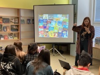 Ve středu 20. března v knihovně proběhla beseda se spisovatelkou, scenáristkou a lektorkou Klárou Smolíkovou. V úvodu žáky z 8. A seznámila se svou rozmanitou tvorbou a nabídla tipy ke čtení, které se týkaly zejména sci-fi, fantasy nebo komiksů. Hlavním tématem setkání ale bylo židovství, které paní Smolíková spolu se svým synem Tobiášem zpracovala v knize Cha cha chá, zasmál se Mordechaj Veselé putování židovskou historií. Kniha žákům přiblížila historii a život Židů, pomocí pracovních listů si mohli udělat představu, jaké to bylo být Židem, jaká pravidla, zvyky a zákony museli lidé židovského původu dodržovat. Dozvěděli se, proč židovští muži nosí jarmulky a nechávají si narůst pejzy, kdo to je rabín nebo jak probíhá židovský pohřeb. Paní Smolíková připomněla také kameny zmizelých – dlažební kostky, které obsahují jména a základní údaje o lidech, kteří žili v našem městě a stali se obětí nacistického režimu druhé světové války. Víte, kde tyto kameny najdeme? Kde se ve Frýdku-Místku nachází židovský hřbitov? A máme ve městě židovskou synagogu? Nejen těmito otázkami paní Smolíková v žácích podnítila zájem o historii Židů v našem městě a jeho okolí. Díky této besedě jsme si opět uvědomili, jak je důležité nezapomínat na to, co bylo, a vnímat věci kolem nás v širších souvislostech.
