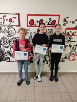 1. místo: Šimon Sykala, 2. místo: Matyáš Martinko, 3. místo: Lukáš Mráček- kategorie KLOKÁNEK (4. a 5. třída)