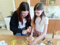 V pátek 16. května si žáci 6. B vyzkoušeli angličtinu v praxi netradičním způsobem – při vaření. Využili jsme školní kuchyňku a společně si připravili jeden z typických britských dezertů – jablečný drobenkový koláč neboli Apple Crumble.