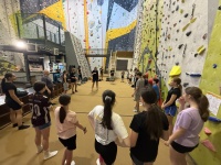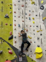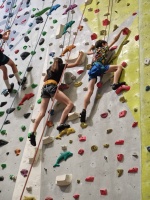 Lezečky, sedák, magnézium, zajistit se — a už nebylo na co čekat, šlo (nebo spíše lezlo) se na věc. Pro většinu dětí, ale i pro pedagogický doprovod, to byla úplně první zkušenost s lezením. Myslím, že všichni překonali své obavy z výšek. Někteří skrytí talenti ze sebe vydali téměř olympijské výkony a zaslouží si obdiv i uznání.