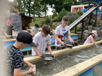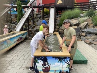 Jedním z velkých zážitků bylo  i rýžování zlata, které si děti vyzkoušely jako opravdoví zlatokopové. Největší úspěch však  měly el. autíčka a trampolíny