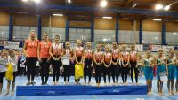 Naše mladší dívky v kategorii Junior I zahájily svůj den už v 7 hodin ráno rozcvičením. Očividně je to vůbec nerozhodilo, protože právě ony vybojovaly zlato v konkurenci patnácti týmů. Dívky předvedly na všech třech nářadích krásný výkon, za který se rozhodně nemusely stydět. Bonusem byla nejlépe hodnocena trampolína jak v obtížnosti, tak v provedení. V Českém poháru se probojovaly na stříbrnou příčku.