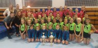 Dne 4. listopadu jsme se již druhým rokem zúčastnili Baby TeamGymu v Třebíči. Na těchto závodech cvičí pouze ti nejmladší (1. stupeň ZŠ a pokud vychází ročník narození také děti z šestých tříd). Cvičí se pouze na dvou nářadích ze tří - trampolína a akrobacie.