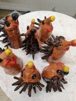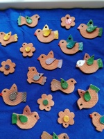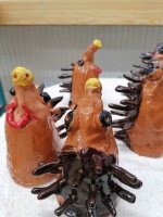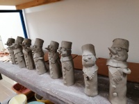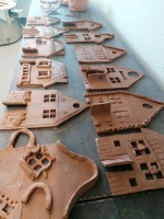 V tomto školním roce pracují v keramickém kroužku ŠD převážně žáci z I. stupně naší ZŠ. Většinu  tvoří úplní začátečníci, a tak postupujeme od jednoduchých výtvorů ke složitějším. Tvořit se  snažíme tematicky k danému ročnímu období. Učíme se vyrábět z hliněných válečků, z hroudy hlíny vytahujeme misky, válíme placky a vykrajujeme z nich podle šablon díly nebo obrázky, modelujeme a slepujeme části „šlikrem“, glazujeme nebo zdobíme barevnými sklíčky. Právě teď tvoříme reliéf domečku. Naše výtvory zdobí výstavky i některé vitríny školy. Od října jsme se toho hodně naučili a všichni se moc snažíme. Nejvíce se všichni těší na točení na hrnčířském kruhu. Ovšem není to žádná legrace, udržet tu hrudku na místě, pěkně uprostřed kruhu. Na to je potřeba sílu a i tu snad časem získáme.