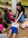 Tato akce je součástí našeho celoročního plánu a vždy je doprovázena nadšením dětí. Ty se nejen seznámí se základy první pomoci teoreticky, což je jistě důležité, ale následně si vše mohou vyzkoušet na vlastní kůži. S největším ohlasem se každoročně setkává ošetření krvácivých stavů. Krev v podobě medu a červeného potravinářského barviva dělá divy. Tolik spokojených a natěšených dětí se jen tak nevidí.