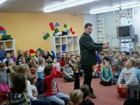 Beseda i soutěže, které si pro děti připravil, byly zaměřené na přípravu zvířat ve volné přírodě na příchod zimy. Moc se nám líbilo povídání o tom, čím můžeme přikrmovat ptáky v zimě a jak se myslivci starají o lesní zvěř. Protože jsme na ni také mysleli, předali jsme myslivcům kaštany a žaludy, které během podzimu děti nasbíraly a usušily.