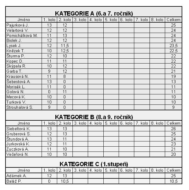 VÝSLEDKY 2. KOLA ZEMĚPISNÉ SOUTĚŽE