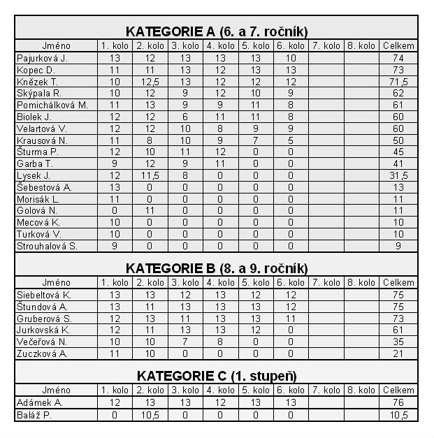 VÝSLEDKY 6. KOLA ZEMĚPISNÉ SOUTĚŽE