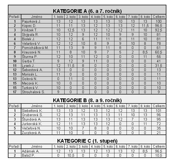 Všem vítězům blahopřejeme a těšíme se na jejich účast v dalších soutěžích. Při slavnostním vyhodnocení obdrží vítězové hodnotné ceny.