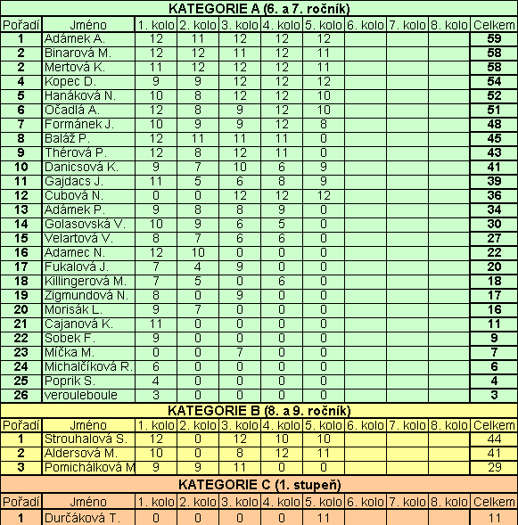 VÝSLEDKY 5. KOLA ZEMĚPISNÉ SOUTĚŽE