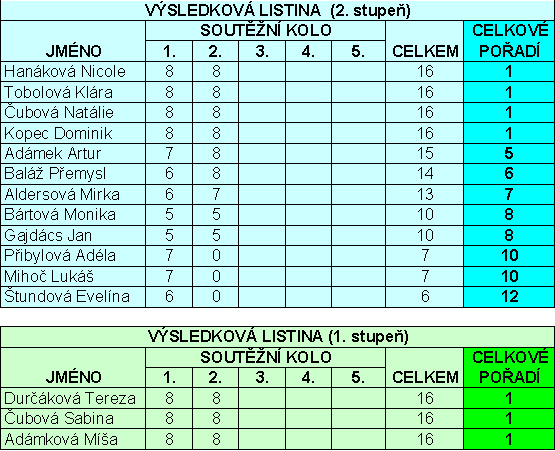 Správné odpovědi 2. kola:1) Sebastian Vettel, Německo; 2) Oxford; 3) finština; 4) Mont Blank - nejvyšší hora Alp (Evropy); 5) Louvre, Paříž