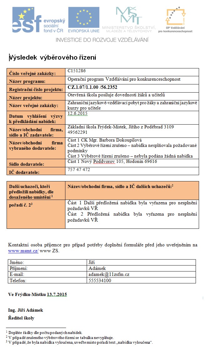 Název veřejné zakázky :Zahraniční jazykově-vzdělávací pobyt pro žáky a zahraniční jazykové kurzy pro učitele.