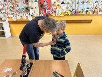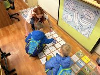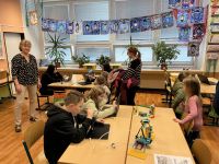 Ve čtvrtek 16. února se na naší škole konal Den otevřených dveří. Zájemci z řad rodičů budoucích prvňáčků se mohli seznámit s prostředím, atmosférou a učiteli školy. Jednotlivé prohlídky školou zajišťovali vyučující, kteří také ochotně odpovídali na veškeré dotazy. Návštěvníci procházeli různými stanovišti, kde si předškoláci prohlédli učebnice a pracovní sešity, které jim budou pomáhat při nácviku čtení, psaní a počítání. Jinde si vyzkoušeli práci s interaktivní tabulí, skládali puzzle, vytvořili si vlastní odznaky a placky, ale také mohli vidět práci s robotikou (VIDEO). V přírodovědné učebně si mohli návštěvníci vyzkoušet práci s mikroskopem, nebo si prohlédnout naše školní zvířátka (rybičky a morčata), o která se žáci školy pečlivě a vzorně starají. Na konci prohlídky bylo pro všechny přichystáno občerstvení ve školní kuchyňce.