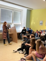 Ve středu 20. března v knihovně proběhla beseda se spisovatelkou, scenáristkou a lektorkou Klárou Smolíkovou. V úvodu žáky z 8. A seznámila se svou rozmanitou tvorbou a nabídla tipy ke čtení, které se týkaly zejména sci-fi, fantasy nebo komiksů. Hlavním tématem setkání ale bylo židovství, které paní Smolíková spolu se svým synem Tobiášem zpracovala v knize Cha cha chá, zasmál se Mordechaj Veselé putování židovskou historií. Kniha žákům přiblížila historii a život Židů, pomocí pracovních listů si mohli udělat představu, jaké to bylo být Židem, jaká pravidla, zvyky a zákony museli lidé židovského původu dodržovat. Dozvěděli se, proč židovští muži nosí jarmulky a nechávají si narůst pejzy, kdo to je rabín nebo jak probíhá židovský pohřeb. Paní Smolíková připomněla také kameny zmizelých – dlažební kostky, které obsahují jména a základní údaje o lidech, kteří žili v našem městě a stali se obětí nacistického režimu druhé světové války. Víte, kde tyto kameny najdeme? Kde se ve Frýdku-Místku nachází židovský hřbitov? A máme ve městě židovskou synagogu? Nejen těmito otázkami paní Smolíková v žácích podnítila zájem o historii Židů v našem městě a jeho okolí. Díky této besedě jsme si opět uvědomili, jak je důležité nezapomínat na to, co bylo, a vnímat věci kolem nás v širších souvislostech.