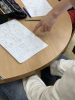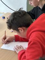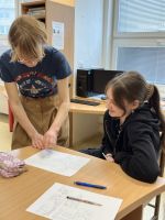 Když žáci získali základní informace o tom, jak by měl komiks vypadat, dostali za úkol vymyslet jednu komiksovou stránku, minipříběh na téma „Tak tohle mi udělalo radost!“. Většina z nich si na této práci dala záležet a poctivě celou hodinu vymýšlela a kreslila příběh za pomocí srozumitelných rad a postřehů Kateřiny Čupové. Jsme rádi, že si tato nadaná autorka animovaných filmů a komiksů udělala ve svém nabitém programu čas a my jsme si díky ní mohli udělat představu, co všechno obnáší komiksová tvorba.