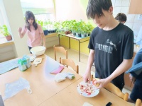 Děti pracovaly v menších skupinách podle receptu s anglickými instrukcemi a pečení si náramně užívaly. Nejlepším zážitkem však byla závěrečná ochutnávka. Koláč jsme podávali s vanilkovou zmrzlinou a všem se moc povedl.