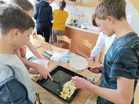Žáci 6. B měli možnost prožít angličtinu trochu jinak. Ve čtvrtek 16. 5. jsme se rozhodli využít naši školní kuchyňku a připravit si jeden z typických britských pokrmů – jablečný drobenkový koláč zvaný Apple crumble.