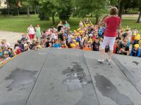 Ve čtvrtek 27. června park u naší školy opět ožil dětským štěbetáním a pobíháním mezi jednotlivými stanovišti. Tradičně se zde konal Den zdraví pro žáky 1. stupně. Děti se vydováděly nejen při různých pohybových aktivitách, ale musely prokázat své znalosti například při poskytování první pomoci, určovaly dopravní značky, vyzkoušely si přenos raněného.