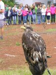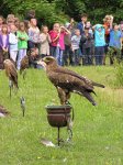 Součástí akce byly i drobné soutěže s cenami. Vítěz nejtěžší otázky si směl za odměnu přivolat dravce na svou ruku. Pro některé děti to bylo určitě první setkání s tolika druhy dravých ptáků "tváří v tvář". Myslím, že se všem akce líbila, takže nikomu ani nevadilo pár kapek, které občas spadly z nebe ...