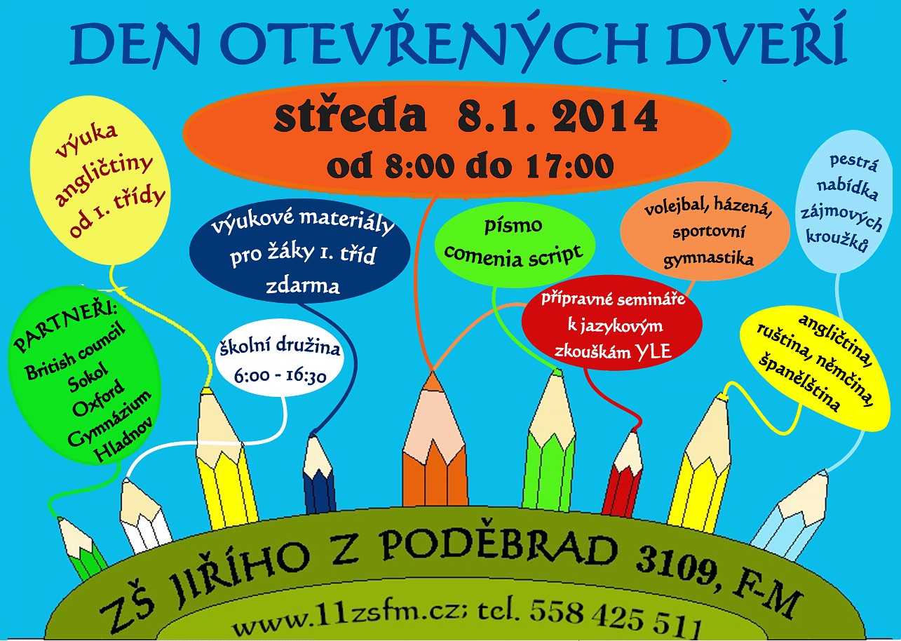 Základní škola Frýdek-Místek, Jiřího z Poděbrad 3109 zve všechny předškolní děti, jejich rodiče a další zájemce, kteří se chtějí seznámit se životem naší školy, na Den otevřených dveří, který se koná
