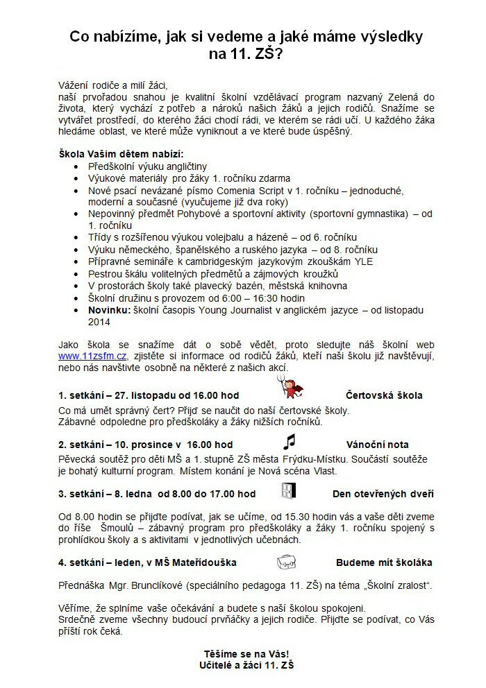 Co nabízíme, jak si vedeme a jaké máme výsledky na 11. ZŠ?