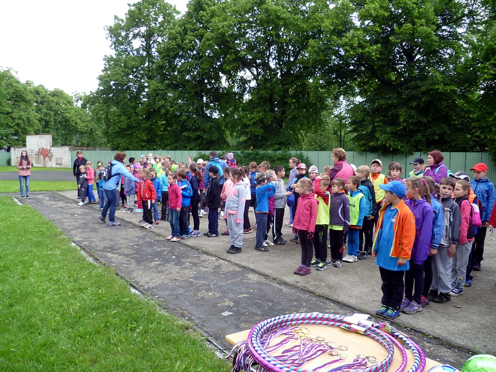 Soutěž v atletickém trojboji žáků městských školních družin se konala ve středu 27.5.2015 na hřišti ZŠ ul. J. z Poděbrad. I přes deštivé počasí, které nás před závody potrápilo, se soutěže zúčastnilo devět družinových týmů. Děvčata a hoši 1. - 5. ročníků z celého města soutěžili v běhu na 50 m, skoku do dálky z místa a hodu kriketovým míčkem. Výkony všech byly po zásluze odměněny a tři nejlepší z každé kategorie získali i díky dotaci našeho města věcné ceny, medaile a diplomy. Všichni závodníci pak obdrželi účastnický list a sladkou odměnu.