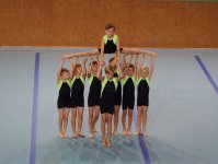 Junior I dívky zahajovaly celý závod nově nacvičenou pódiovou skladbou. Bohužel ji nemají ještě plně zažitou a ve spojení se závodní atmosférou a nervozitou to na jejich výkonu bylo znát. Akrobatické řady, kde ukázaly přemety vpřed a dvakrát rondat salto vzad, zacvičily čistě a hodně si polepšily. Svůj závod děvčata zakončila trampolínou, kde bohužel měla jeden pád ze salta schylmo. Zato první řada se jim vydařila a zacvičila ji o mnoho lépe než na tréninku. Celkově mohou být se svým výkonem spokojená. Děvčata se nakonec umístila na 8. místě z 15 týmů. Stále mají co zlepšovat a hlavně již překonat ten strach ze salt a začít je skákat na akrobacii!