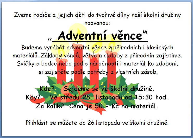 Zveme rodiče a jejich děti do tvořivé dílny naší školní družiny nazvanou: