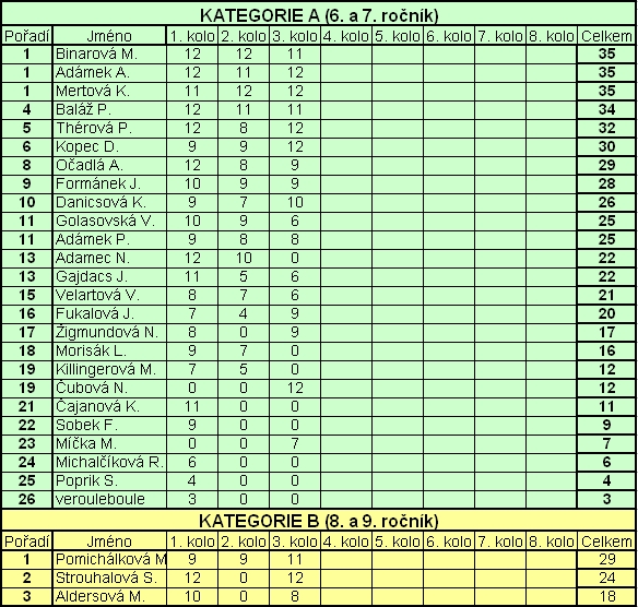 VÝSLEDKY 3. KOLA ZEMĚPISNÉ SOUTĚŽE