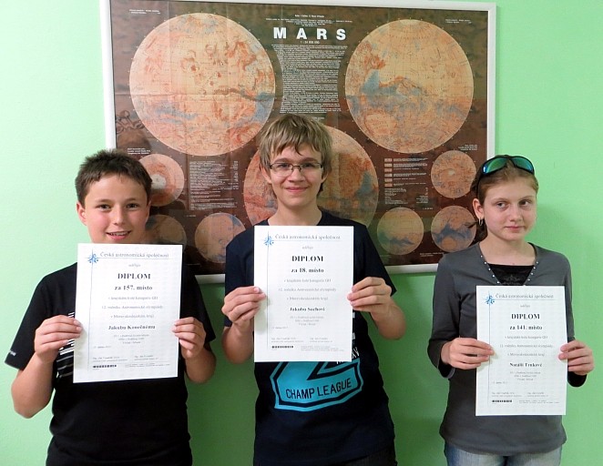 Naše škola má tři řešitele krajského kola Astronomické olympiády.