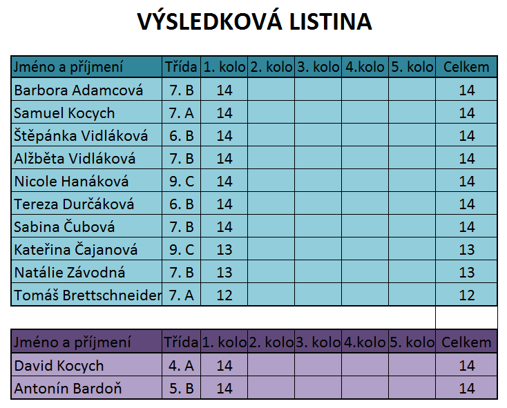 SPRÁVNÉ ODPOVĚDI NA SOUTĚŽNÍ OTÁZKY 1. KOLA