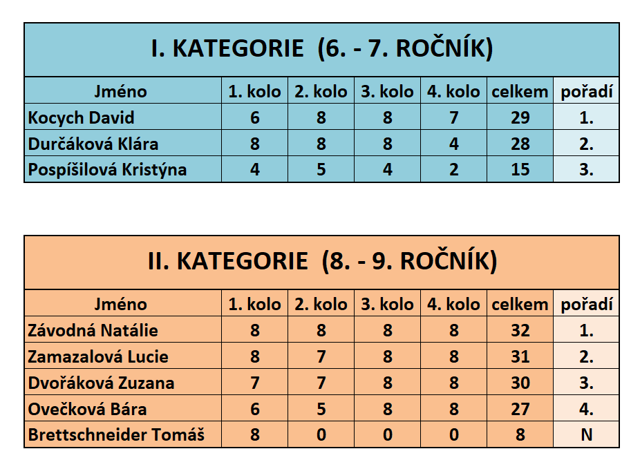 Ve čtvrtek 3. května 2018 se konalo závěrečné kolo korespondenční soutěže. Źáci měli na vypracování úkolů jen 45 minut, ale většina soutěžících byla hotova mnohem dřív. Všem děkujeme za účast a těšíme se na příští ročník. Slavnostní vyhlášení proběhne v příštím týdnu.
