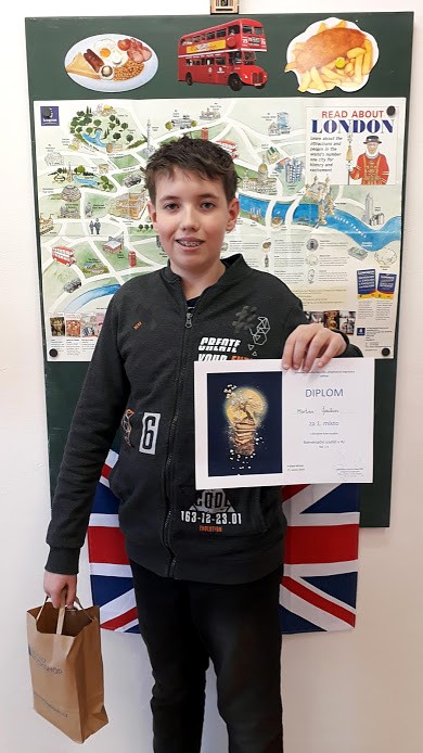 11. ZŠ reprezentovali letos dva chlapci. Daniel Dias z 8.B v kategorii II.A obsadil 18. – 20. místo. Martin Špaček ze 7.B soutěžil v kategorii I.A a jeho znalosti anglického jazyka porota ohodnotila úžasným prvním místem!!!