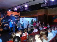 Také letos zavítal na naši školu australský herec Schelie Nielsen se svým divadlem jednoho herce “Dr Klutz English Theatre“. V prvním dubnovém týdnu odehrál pro naše žáky dvě divadelní představení v hudebním klubu Stoun: